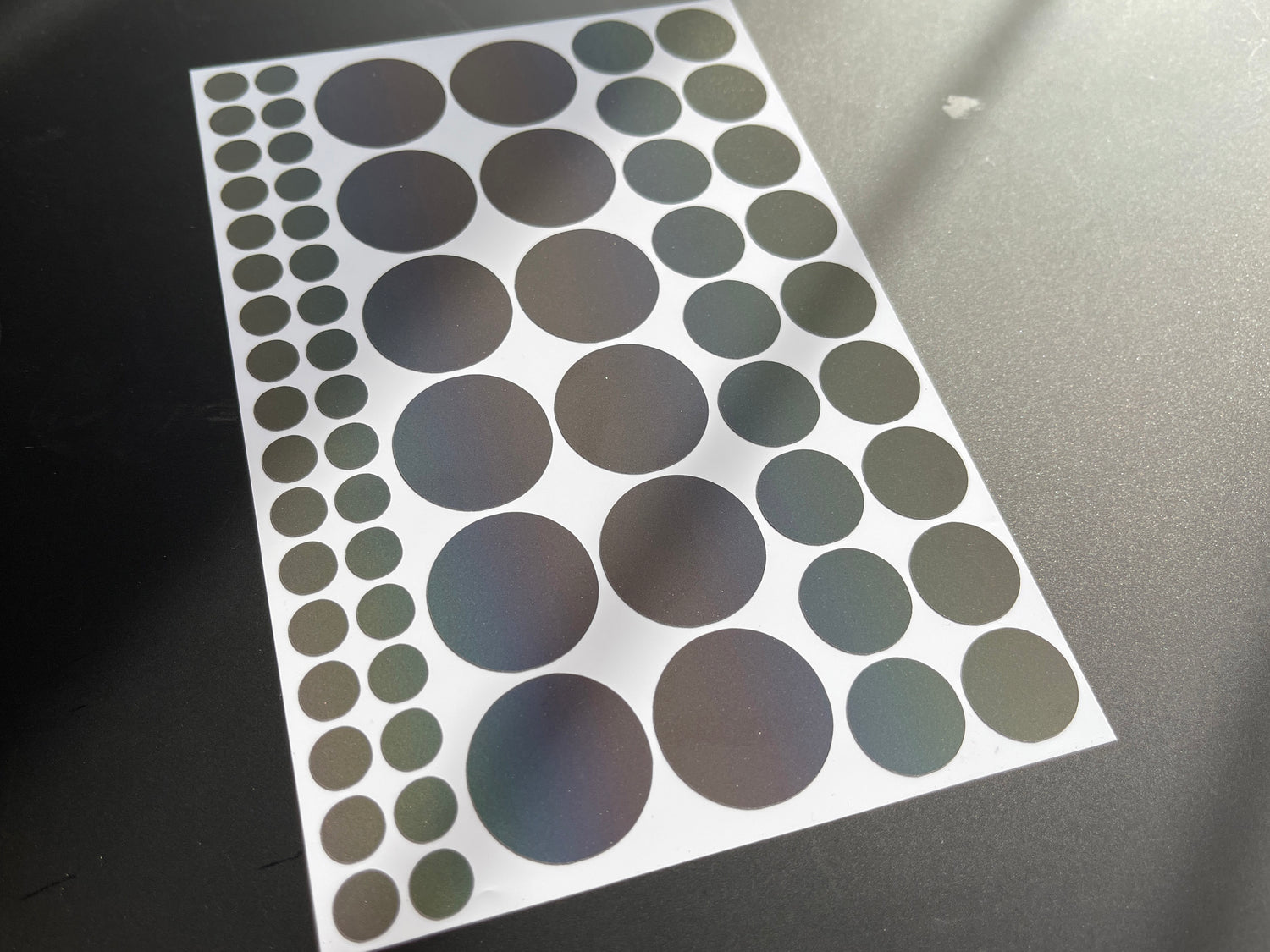 All stickers are totally waterproof, and can be used in all weathers.  Vinyls reflect back light in their respective colours, excluding black which reflects back an off-white light.
